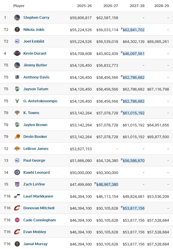 Εκεί, βρίσκονται δύο σέντερ, ο τρεις φορές MVP, Νίκολα Γιόκιτς και ο άνθρωπος που «έκοψε» το «three-peat» των MVP από τον Σέρβο το 2023, Τζοέλ Εμπίντ. Οι αστέρες των Νάγκετς και 76ερς θα γίνουν πλουσιότεροι κατά 55.224.526 δολάρια.