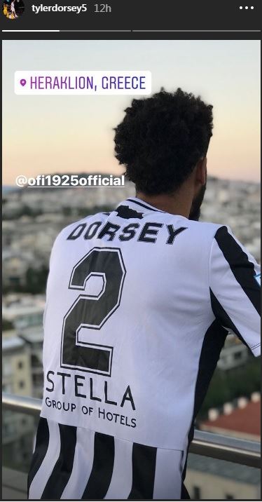 Ο Ντόρσεϊ φόρεσε τη φανέλα με το Νο 2στην πλάτη και από το μπαλκόνι που διέμενε ανέβασε την φωτογραφία στο Instagram με φόντο την πόλη του Ηρακλείου.