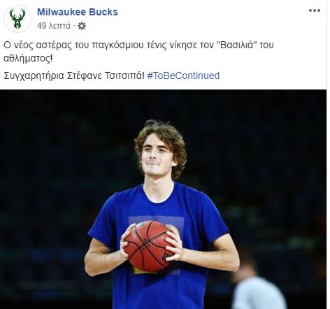 Οι Μιλγουόκι Μπακς με ανάρτησή τους στα social media έδωσαν συγχαρητήρια στον 20χρονο τενίστα για τη μεγάλη νίκη επί του Ελβετού μαέστρου, με το μήνυμά της ομάδας του Γιάννη Αντετοκούμπο μάλιστα να είναι γραμμένο στα ελληνικά.