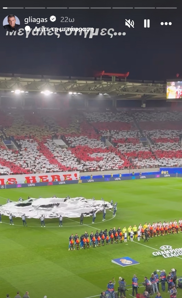 Και οι δύο ανέβασαν βίντεο από το γήπεδο, με τον Γιώργο Λιάγκα να σημειώνει στη δική του ανάρτηση: «Μεγάλες στιγμές».