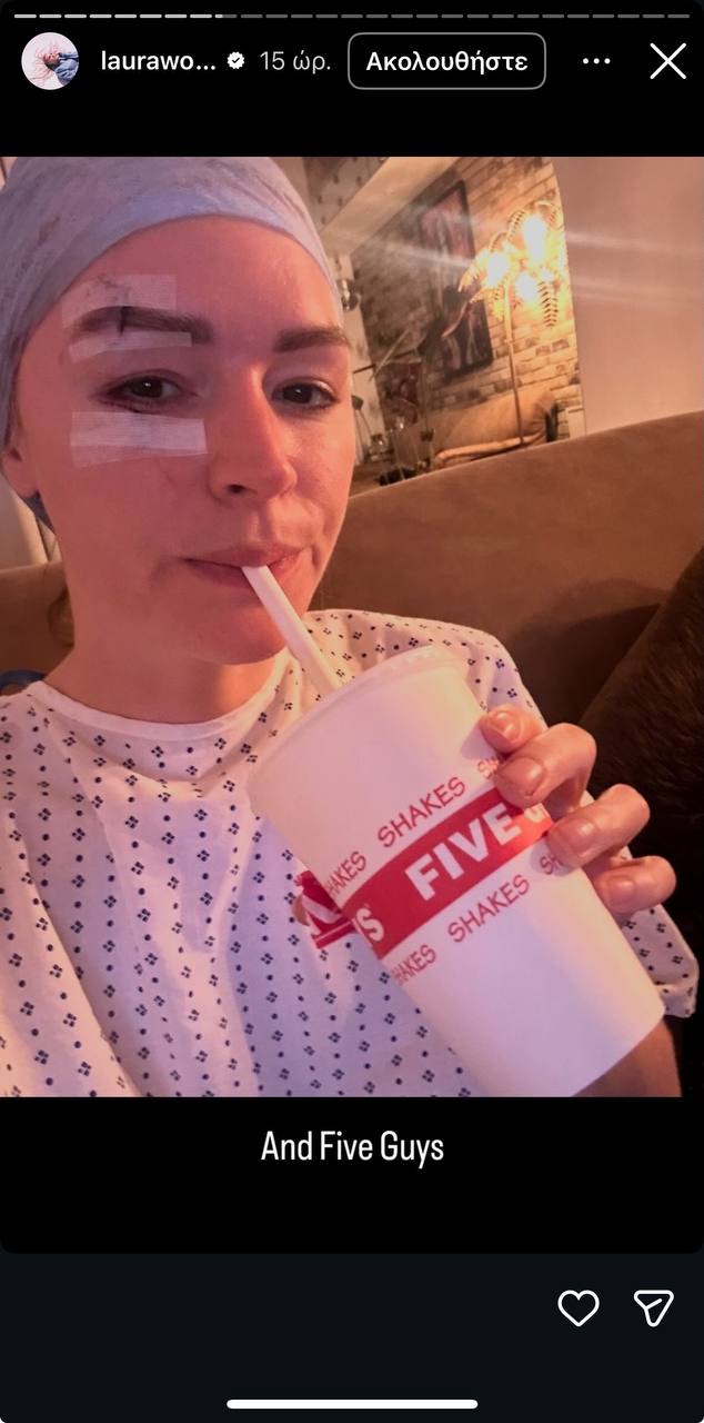 Συγκεκριμένα, η Γουντς δημοσίευσε μία σειρά από φωτογραφίες στο instagram, οι οποίες ανέδειξαν τον σοβαρό τραυματισμό της στην περιοχή των ματιών αλλά και στο χέρι.