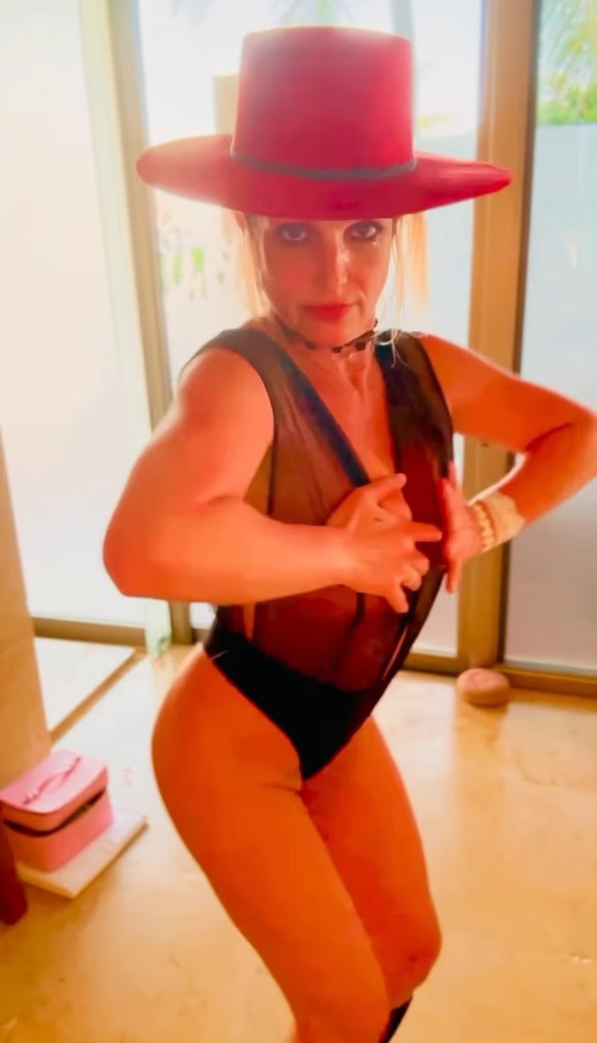 Η πασίγνωστη τραγουδίστρια, Britney Spears είχε ένα μικρό ατύχημα με το ντύσιμό της, το οποίο κάλυψε στρατηγικά με ένα emoji λουλουδιού, ενώ χόρευε στο τραγούδι της Cardi B από το 2018, «I Like It». Όπως φαίνεται σε ανάρτηση που έκανε, συνδύασε μαύρες μπότες μέχρι το γόνατο με αξεσουάρ, όπως ένα μαύρο κολιέ, και επέδειξε τις χαρακτηριστικές χορευτικές της κινήσεις. Τα μακριά ξανθά μαλλιά της ήταν ισιωμένα και στη λεζάντα χρησιμοποίησε emoji μαχαιριού και κόκκινου τριαντάφυλλου.