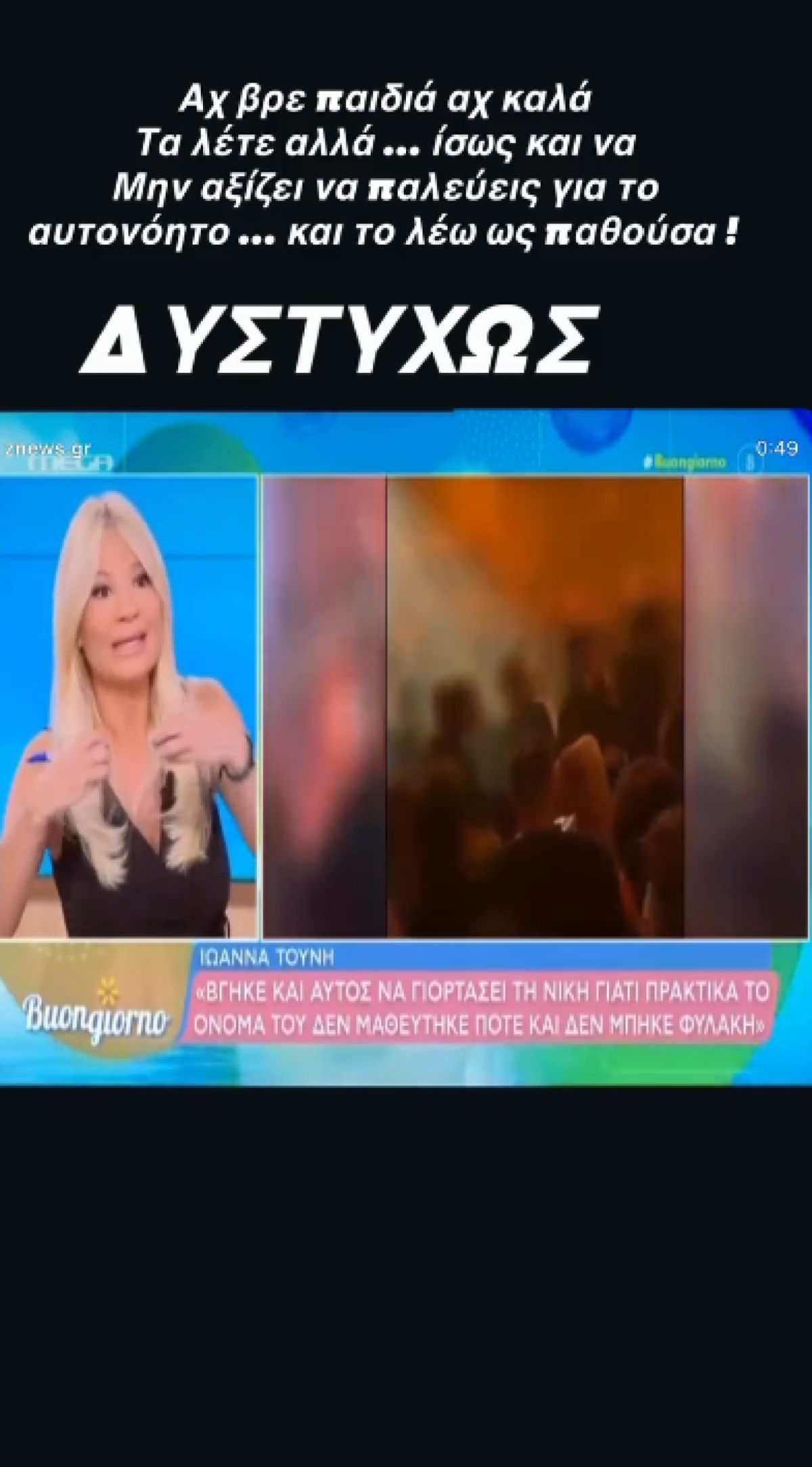 Ο λόγος για την Ειρήνη Στεργιανού την οποία είχαμε γνωρίσει μέσα από τον διαγωνισμό του GNTM και είχε τραβήξει ιδιαίτερα τα βλέμματα του κοινού τόσο για την εκρηκτική εμφάνισή της, όσο και για τον δυναμικό χαρακτήρα της. Η ίδια, σε ανάρτηση που έκανε στον προσωπικό της λογαριασμό στο Instagram, δημοσίευσε απόσπασμα από την εκπομπή Buongiorno στην οποία το πάνελ μιλά για τις υποθέσεις revenge porn, με εκείνη να γράφει χαρακτηριστικά: «Αχ βρε παιδιά, αχ καλά τα λέτε αλλά… Ίσως και να μην αξίζει να παλεύεις για το αυτονόητο… Και το λέω ως παθούσα. Δυστυχώς» έγραψε η ίδια, στέλνοντας το δικό της μήνυμα.