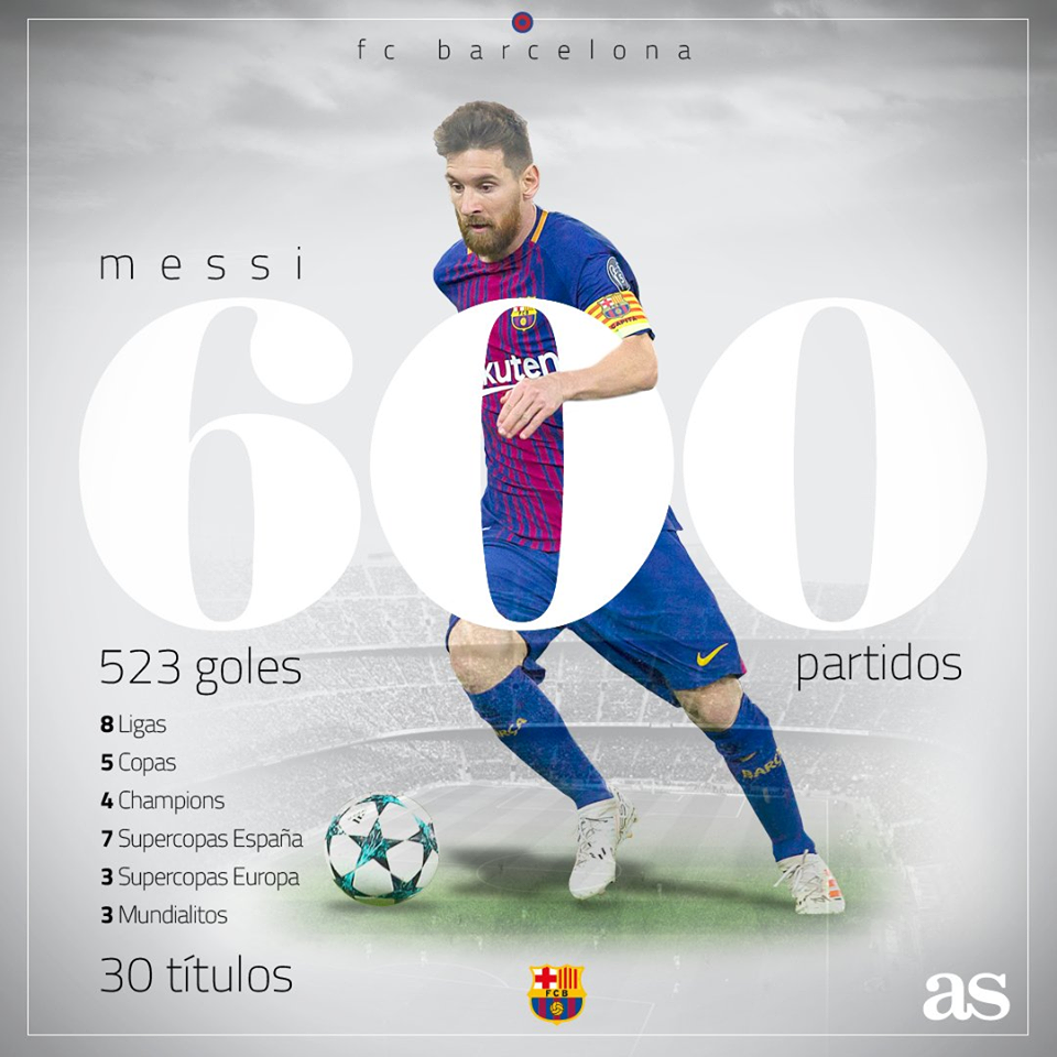 Συγκεκριμένα, ο 30χρονος σε αυτές τις 600 συμμετοχές μετρά 425 νίκες (70,95 %), με 523 (!) γκολ και 197 ασίστ!