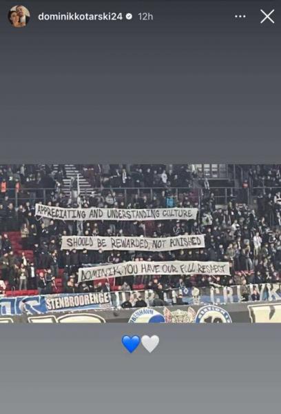 Οι οπαδοί της Κοπεγχάγης ύψωσαν πανό στο οποίο ευχαριστούσαν τον Ντόμινικ Κοτάρσκι για τις δηλώσεις που έκανε μετά από το σχόλιο κατά της τιμωρίας τους.
