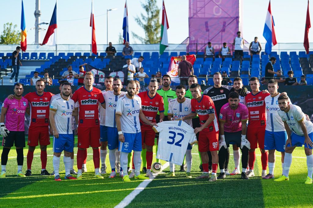 Πριν από τη σέντρα, οι παίκτες των δυο ομάδων στάθηκαν αγκαλιασμένοι στο κέντρο του γηπέδου, αποτίνοντας φόρο τιμής και μνήμης προς τον Σέρβο ποδοσφαιριστή της socca Ντέγιαν Μιλoβάνοβιτς, ο οποίος έφυγε από τη ζωή πριν από δύο μήνες.