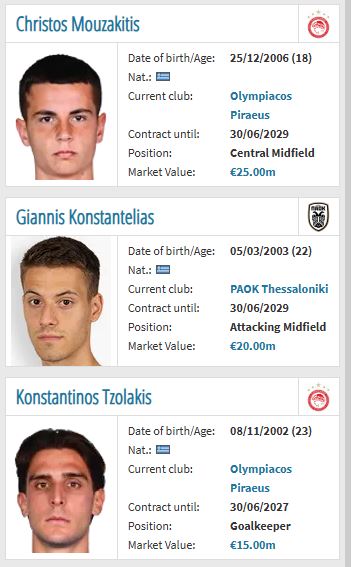 Οι πολύ καλές εμφανίσεις που πραγματοποιούν με τον Ολυμπιακό στο Champions League οι Χρήστος Μουζακίτης και Κωνσταντίνος Τζολάκης και ο Ιωάννης Κωνσταντέλιας με τον ΠΑΟΚ στο Europa League δεν περνούν απαρατήρητες στο διεθνές ποδοσφαιρικό στερέωμα. Χαρακτηριστική άλλωστε η εκτόξευση της «χρηματιστηριακής»της αξίας τους όπως αναφέρει σε θέμα της η εξειδικευμένη ιστοσελίδα transfermarkt.