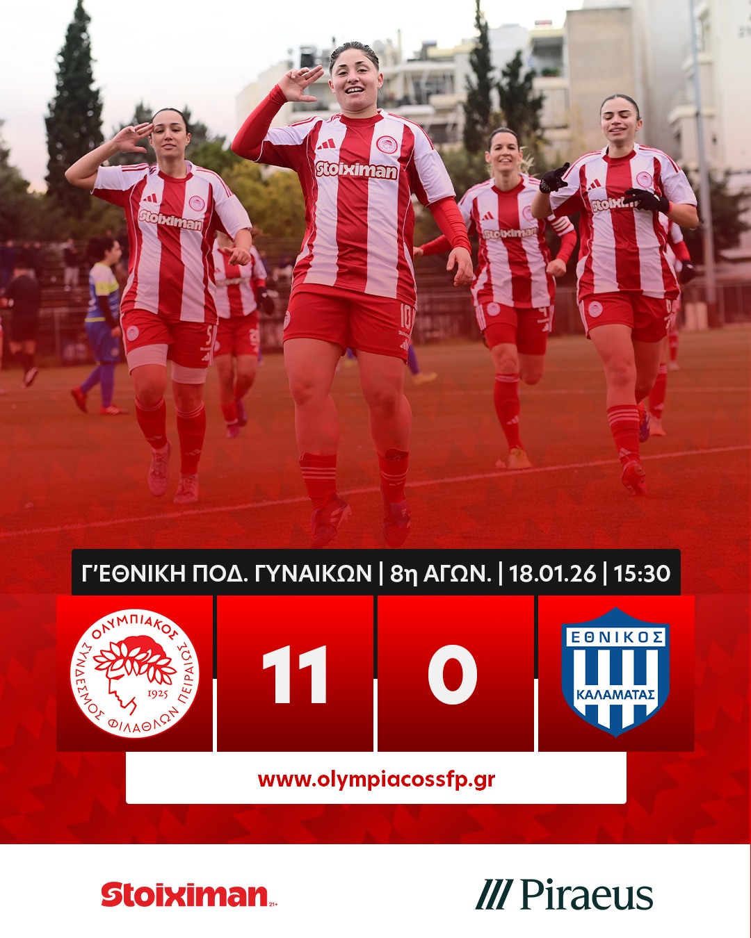 Ο Ολυμπιακός σαρώνει και στο ποδόσφαιρο γυναικών! Οι Ερυθρόλευκες διανύουν μία εξαιρετική σεζόν, τα πεπραγμένα τους το αποδεικνύουν, σε κάθε ματς οι παίκτριες του Τάσου Φλέγγα κυριαρχούν και φουλάρουν για άνοδο.