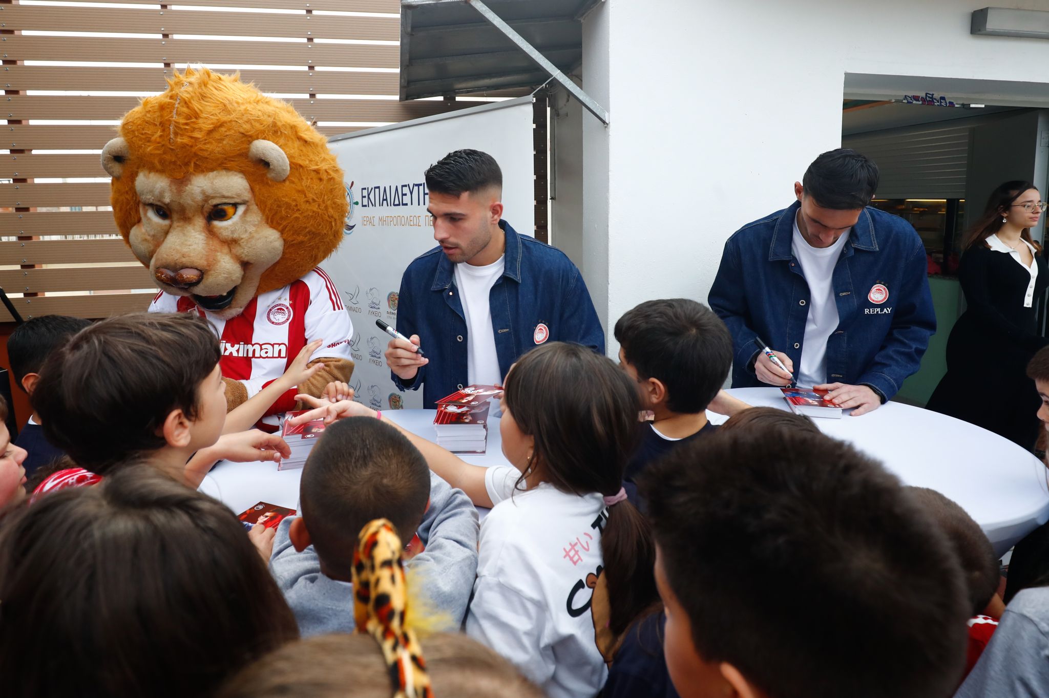 Οι ποδοσφαιριστές του Ολυμπιακού πρόσφεραν δώρα στους μικρούς μαθητές, μαζί με τον Λεόνε, ενώ υπέγραψαν και εκατοντάδες αυτόγραφα. Ο Αλέξης Καλογερόπουλος δήλωσε στο πλαίσιο της εκδήλωσης: «Ο Ολυμπιακός και ο πρόεδρος της ομάδας κύριος Βαγγέλης Μαρινάκης είναι και φέτος δίπλα στα εκπαιδευτήρια Μητρόπολης για να γιορτάσουμε μαζί με τα παιδιά και τη φετινή Τσικνοπέμπτη. Χρόνια πολλά σε όλους, καλές γιορτές», ο Νίκος Μπότης από την πλευρά του σχολίασε: «Είμαστε εδώ και φέτος για να γιορτάσουμε μαζί με τα παιδιά και τους μαθητές την Τσικνοπέμπτη και τις απόκριες. Είμαστε κάθε χρόνο εδώ για να γιορτάσουμε μαζί και πάντα δίπλα στα εκπαιδευτήρια της Μητρόπολης Πειραιά, δείχνοντας ότι με μικρές πράξεις μπορούμε να δίνουμε χαρά στα παιδιά» και ο Αργύρης Λιατσικούρας: «Είμαστε πολύ χαρούμενοι που βρισκόμαστε εδώ ο Ολυμπιακός μόνο αθλητισμός, είναι και κοινωνία και εύχομαι καλή Τσικνοπέμπτη σε όλους με υγεία».