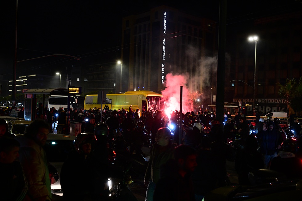 Οπαδοί της ΑΕΚ συνοδεύσαν την «κιτρινόμαυρη» αποστολή κατά την επιστροφή της από το Καραϊσκάκη έως τη Φιλαδέλφεια όπου περίμεναν εκατοντάδες άλλοι για να αποθεώσουν όλοι μαζί τον Νίκολιτς και τους παίκτες του.