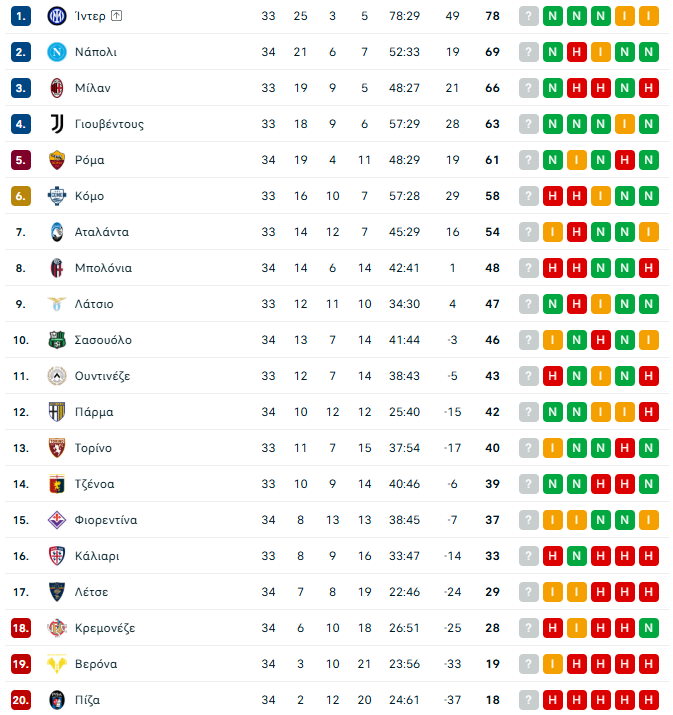 Το πρόγραμμα της 34ης αγωνιστικής στη Serie A: