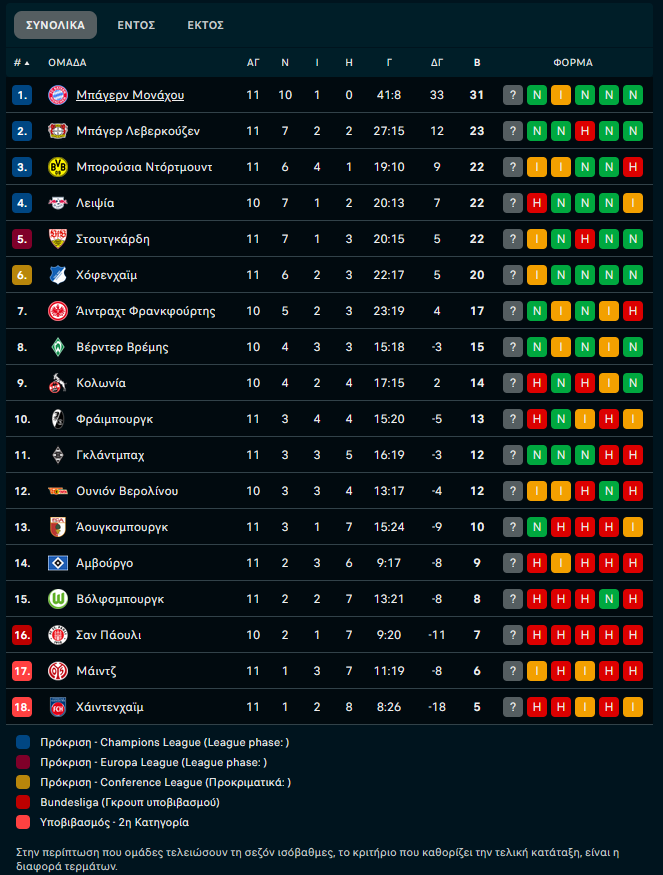 Στο μεταξύ η Λεβερκούζεν πήρε εύκολα τους τρεις βαθμούς στην έδρα της Βόλφσμπουργκ (3-1), στην οποία ο Κωνσταντίνος Κουλιεράκης μπήκε αλλαγή στο δεύτερο ημίχρονο. Από εκεί και πέρα η Άουγκσμπουργκ, με τον Δημήτρη Γιαννούλη ξανά στην αρχική ενδεκάδα της, πήρε τρεις πολύτιμους βαθμούς στην έδρα της κόντρα στο Αμβούργο (1-0).