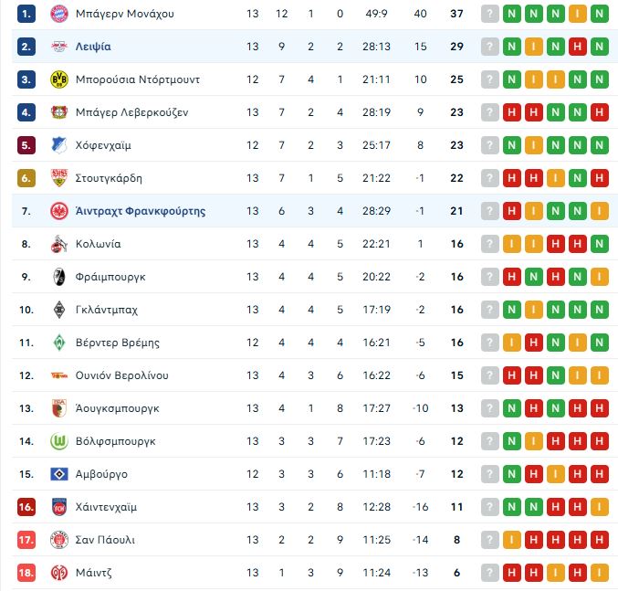 Το πρόγραμμα της 13ης αγωνιστικής της Bundesliga