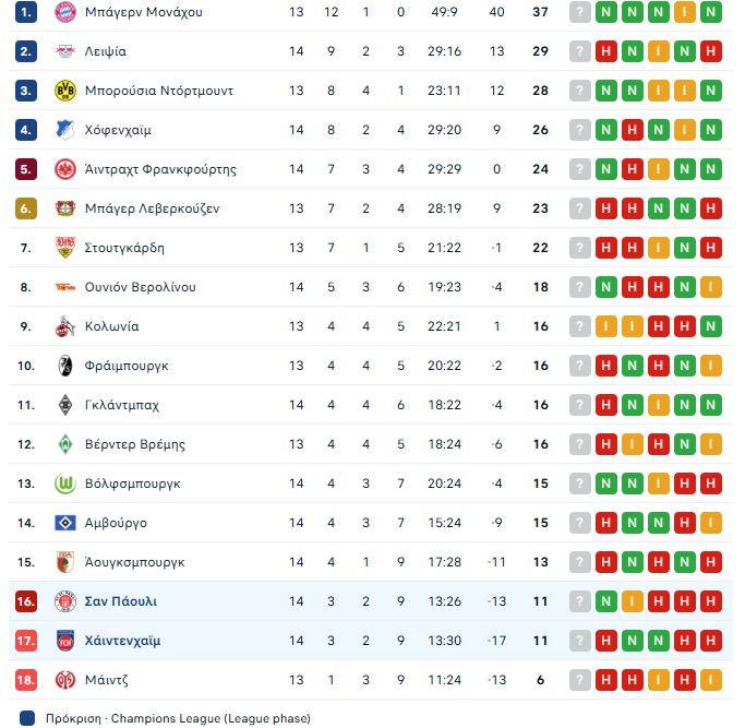 Το πρόγραμμα της 14ης αγωνιστικής της Bundesliga
