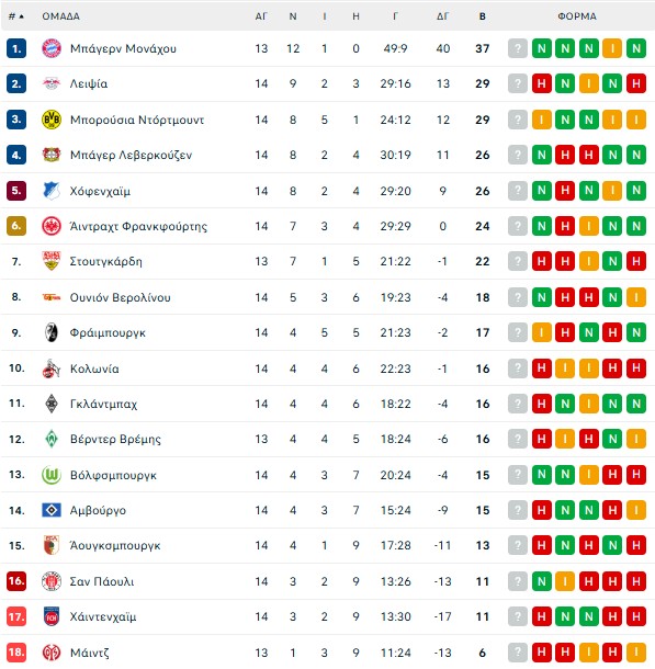 Το πρόγραμμα της 14ης αγωνιστικής της Bundesliga:
