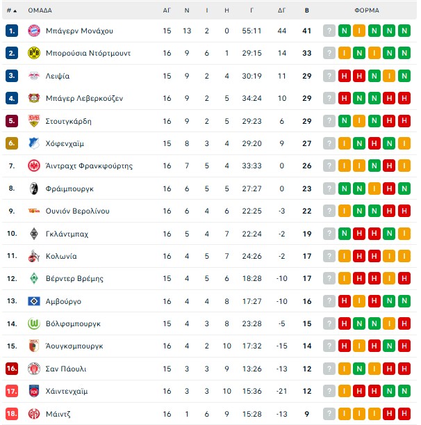 Τα αποτελέσματα και το υπόλοιπο πρόγραμμα της 16ης αγωνιστικής: