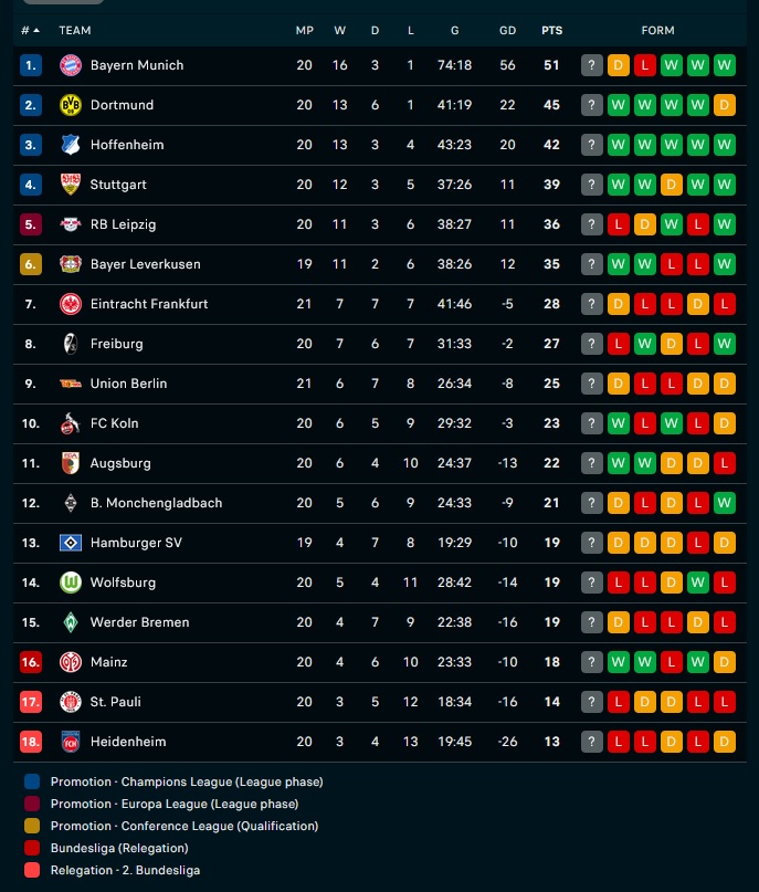 Η βαθμολογία της Bundesliga