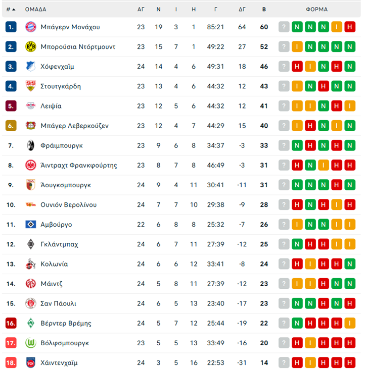 Από εκεί και πέρα, η Γκλάντμπαχ ξέφυγε από τις τελευταίες θέσεις με το 1-0 επί της Ουνιόν Βερολίνου ενώ η Βέρντερ επικράτησε με 2-0 της Χάιντενχαϊμ και ελπίζει σε παραμονή.