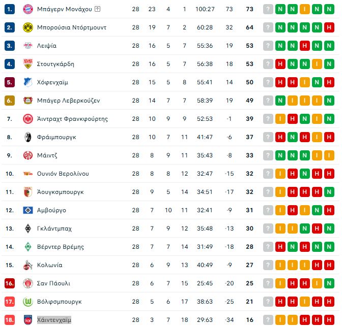 Υπενθυμίζεται ότι η Άιντραχτ φιγουράρει στην έβδομη θέση της βαθμολογίας της Bundesliga με 39 βαθμούς, ενώ η Κολωνία είναι 15η με 27 βαθμούς και βρίσκεται στο +11 από την ουραγό Χάιντενχαϊμ, που είναι στη ζώνη του υποβιβασμού.