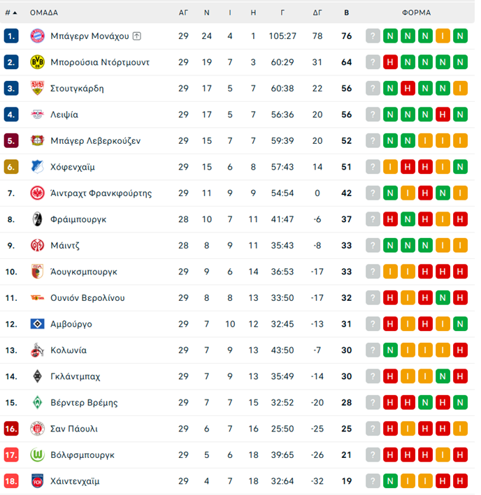 Τα αποτελέσματα και το υπόλποιπο πρόγραμμα της 29ης αγωνιστικής:
