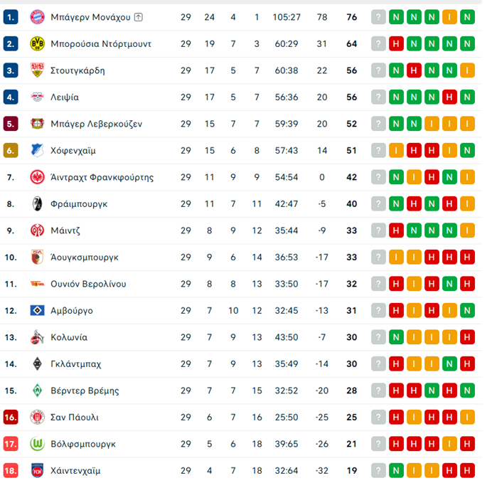 Τα αποτελέσματα της 29ης αγωνιστικής:
