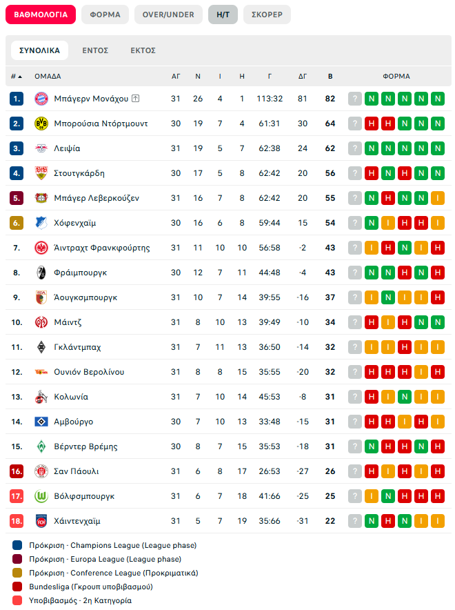 Με δύο γκολ του Πάτρικ Σικ, η Λεβερκούζεν πέρασε νικηφόρα (2-1) από την Κολωνία και συνεχίζει να ελπίζει για μία θέση στην τετράδα (ή πεντάδα) που οδηγεί στο Champions League της επόμενης περιόδου. Στη μάχη της παραμονής, η ουραγός Χαϊντενχάιμ πήρε… παράταση ζωής, καθώς νίκησε 2-0 τη Ζανκτ Πάουλι και μείωσε τη μεταξύ τους διαφορά στους τέσσερις βαθμούς.