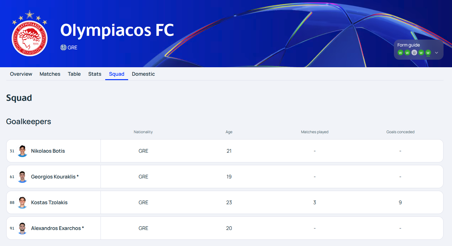 Η αλλαγή που είχαν ζητήσει οι ερυθρόλευκοι πέρασε από την UEFA και μάλιστα έχει ανανεωθεί η λίστα των Πειραιωτών και στο επίσημο σάιτ της ευρωπαϊκής ομοσπονδίας, με τον 21χρονο γκολκίπερ να έχει προστεθεί δίπλα στους Κωνσταντή Τζολάκη, Γιώργο Κουράκλη και Αλέξανδρο Εξάρχο, αντί του Πασχαλάκη.