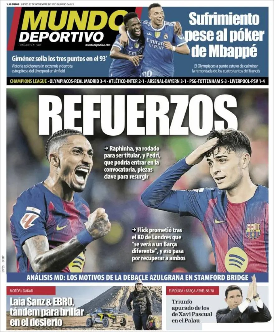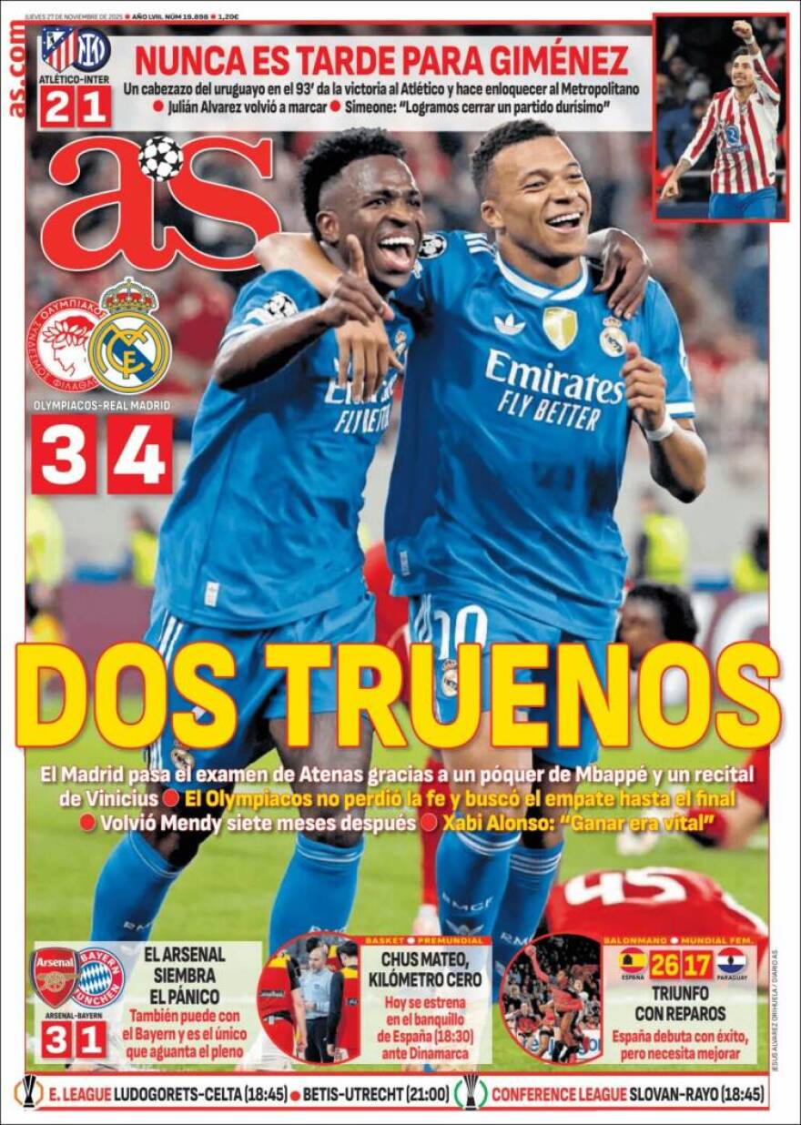 «Ευλογία σε όσους βρεθούν σε γήπεδο όπως το Καραϊσκάκης», αναφέρει στο πρωτοσέλιδό της η Marca, με την AS να αναφέρει: «Ένας πολύ παράξενος αγώνας στην κόλαση της Αθήνας» – «Ο Ολυμπιακός δεν έχασε την πίστη του μέχρι το τέλος».