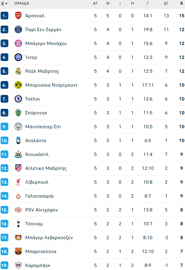 Η βαθμολογία της League Phase του Champions League
