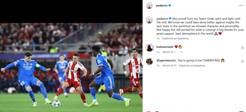 Ο Ντάνιελ Ποντένσε έστειλε το δικό του μήνυμα μετά το παιχνίδι με τη Ρεάλ Μαδρίτης στο Καραϊσκάκη.