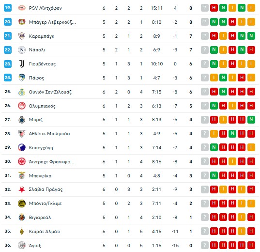 Δείτε πως έχει διαμορφωθεί η βαθμολογία της League Phase του Champions League μετά τα αποψινά αποτελέσματα. Σε ποια θέση είναι ο Ολυμπιακός.