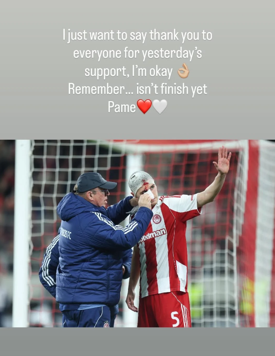 Ο Πιρόλα συνέχισε με δεμένο το κεφάλι μέχρι και το ημίχρονο όπου αντικαταστάθηκε από τον Μεντιλίμπαρ, με τον Ιταλό ποδοσφαιριστή να στέλνει ένα καθησυχαστικό μήνυμα μετά τη σοβαρή σύγκρουση μέσα από τα social media.