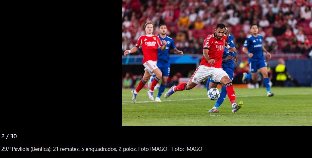 Από εκεί και πέρα ο ένας Έλληνας είναι ο Βαγγέλης Παυλίδης της Μπενφίκα, ο οποίος υπό τις οδηγίες του Ζοσέ Μουρίνιο έχει φέτος στο Champions League 21 τελικές, πέντε στην εστία και 2 γκολ.