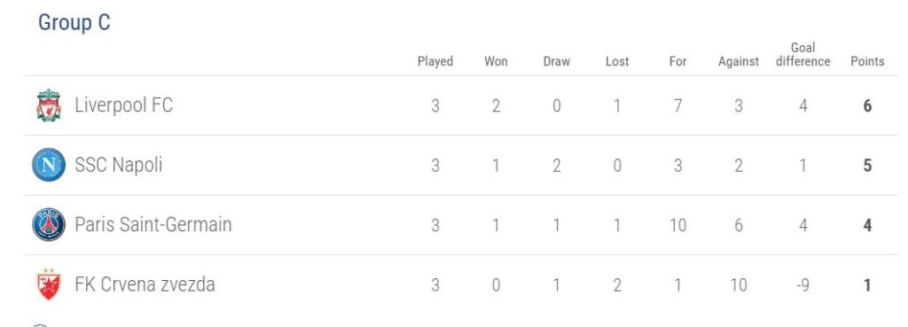 Με αυτή τη νίκη η Λίβερπουλ έφτασε τους 6 βαθμούς και ανέβηκε στην κορφή του γ’ ομίλου, με τον Ερυθρό Αστέρα να μένει στην τελευταία θέση με μόλις 1 βαθμό.