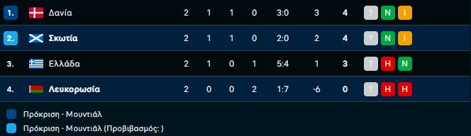 15/11: Ελλάδα – Σκωτία, Δανία – Λευκορωσία