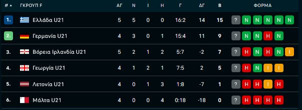 Η Εθνική Ελπίδων συνέχισε το απόλυτο στα προκριματικά του Euro 2027 Κ21, επικρατώντας με 4-0 της Βορείου Ιρλανδίας και έκανε το 5/5 στον όμιλό της. Αλεξίου (19'), Γκούμας (26'), Τζίμας (63') και Σμυρλής (81') ήταν αυτοί που έδωσαν το τρίποντο στην Ελλάδα.