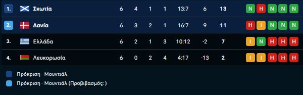 Η τελική βαθμολογία του ομίλου της Εθνικής