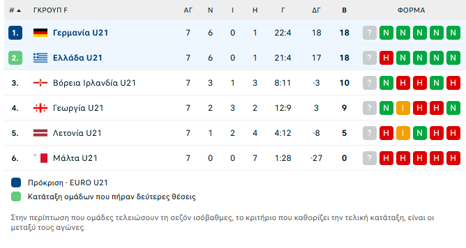 H βαθμολογία στον όμιλο της Εθνικής: