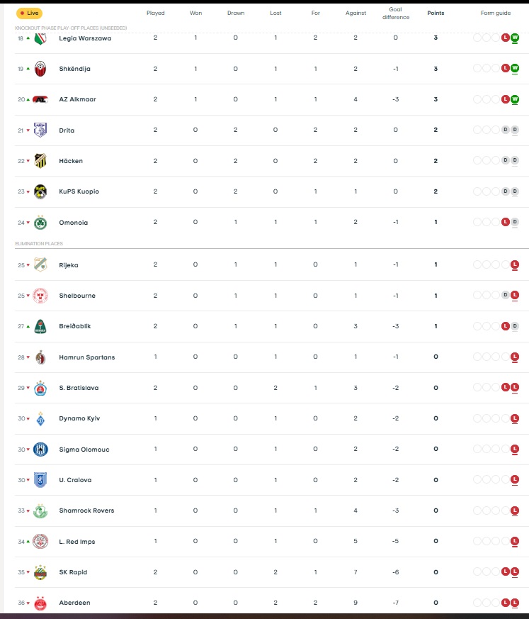 Εξάλλου, μεγάλη νίκη με 2-1 μέσα στο Ντόνετσκ πέτυχε η Λέγκια Βαρσοβίας με 2-1, ενώ σε ένα παιχνίδι που ολοκληρώθηκε στο 14ο λεπτό των καθυστερήσεων, η Ράγιο Βαγεκάνο γλίτωσε την ήττα στο 90+13′ ισοφαρίζοντας στην έδρα της Χάκεν με 2-2.