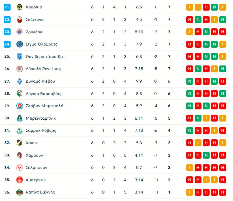 Πώς διαμορφώθηκε η βαθμολογία του Europa Conference League μετά την 6η και τελευταία αγωνιστική της League Phase.