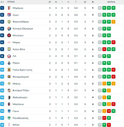 Στα υπόλοιπα ματς, η Λιόν νίκησε με 2-0 τη Βασιλεία, η Φερεντσβάρος πέρασε από την Αυστρία με 3-2 κόντρα στη Ζάλτσμπουργκ, η Μπραν είχε εύκολο έργο με τη Ρέιντζερς για το 3-0, η Μπράγκα επιβλήθηκε του Ερυθρού Αστέρα 2-0, ενώ χωρίς σκορ έληξε το ματς της Γκενκ με την Μπέτις.