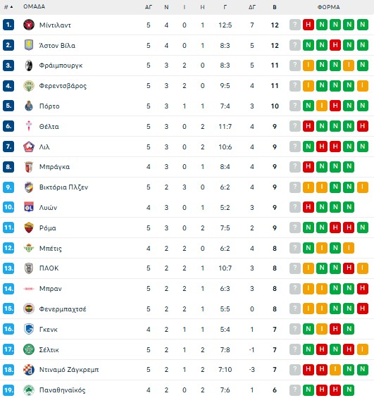Η Ρόμα, με τον Κώστα Τσιμίκα να περνά ως αλλαγή στο 78′, πήρε τη δεύτερη σερί νίκη της στη διοργάνωση αφού επιβλήθηκε 2-1 της Μίντιλαντ που ήταν πρώτη μέχρι πρότινος. Ο Ελ Αϊναουί στο 7′ άνοιξε το σκορ για τους Ρωμαίους, με τον Ελ Σαράουι να κάνει το 2-0. Το μόνο που κατάφεραν οι Δανοί ήταν να μειώσουν σε 2-1 με τον Παουλίνιο.