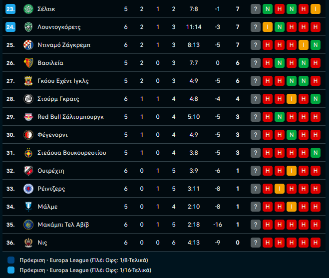 Από εκεί και πέρα, η Στουτγκάρδη εκμεταλλεύτηκε την έδρα της, νίκησε 4-1 τη Μακάμπι Τελ Αβίβ και με 12 βαθμούς οι «Σουηβοί» βρίσκονται στην 6η θέση. Μία θέση πιο πάνω πέρασε η Μπράγκα, μετά το σπουδαίο «διπλό» στη Γαλλία επί της Νις (1-0).