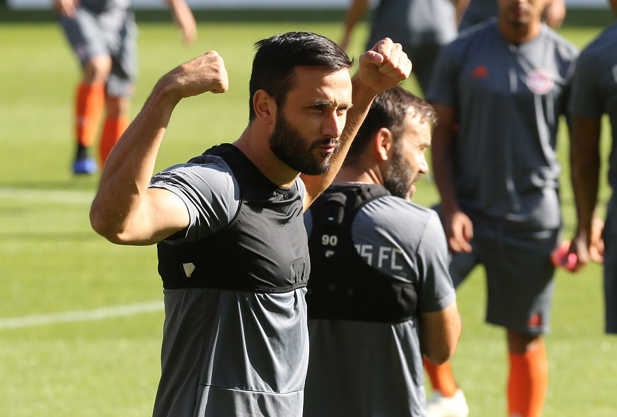 Δείτε εικόνες από την προπόνηση των ερυθρόλευκων το πρωί της Τετάρτης: