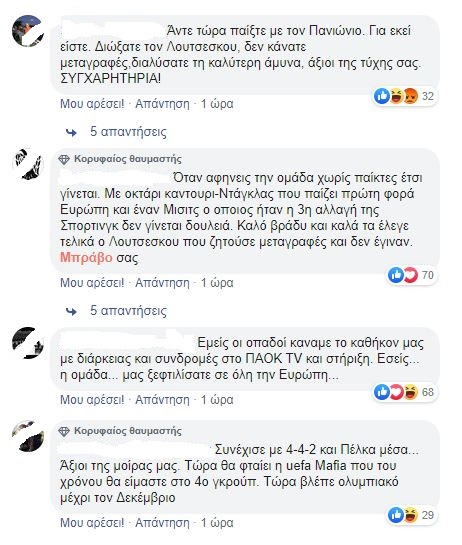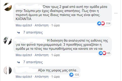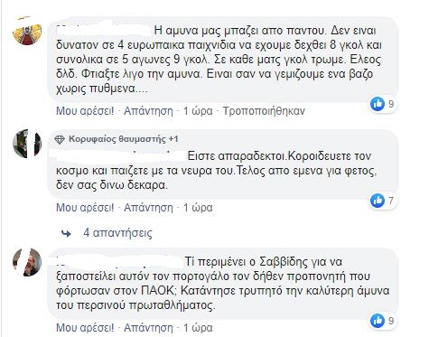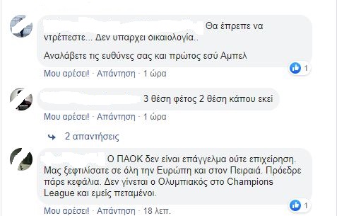 Δείτε μερικά από τα πιο χαρακτηριστικά της αγανάκτησης σχόλια στον επίσημο λογαριασμό της ΠΑΕ ΠΑΟΚ στο Facebook:
