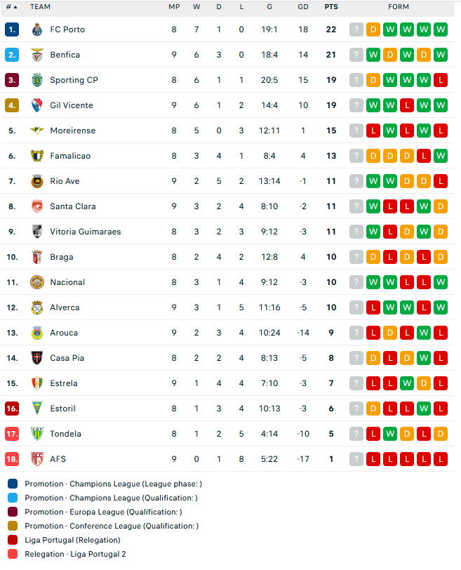 Η βαθμολογία του πορτογαλικού πρωταθλήματος