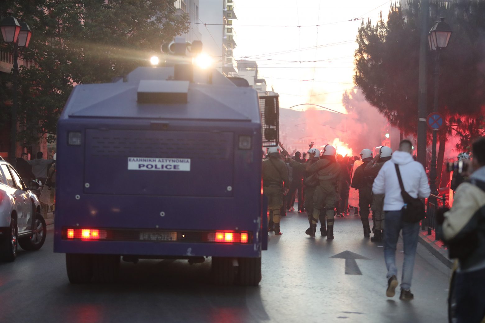 Την ίδια ώρα στο κέντρο, και συγκεκριμένα στον Σύνδεσμο στα Εξάρχεια, έχουν συγκεντρωθεί και οπαδοί της ΑΕΚ.