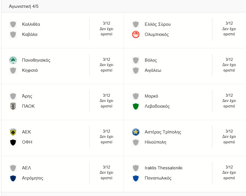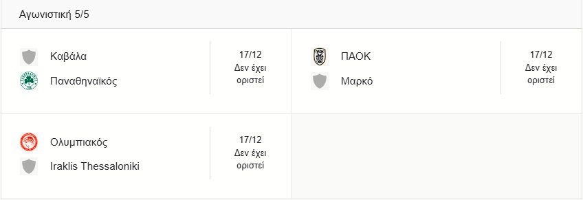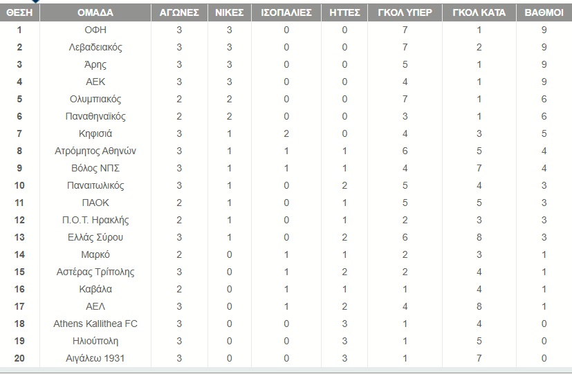 Μέχρι στιγμής ΟΦΗ, Λεβαδειακός, Άρης και ΑΕΚ έχουν το απόλυτο (3χ3), όπως και ο Ολυμπιακός και Παναθηναϊκός, αλλά με ένα παιχνίδι λιγότερο (6β. δηλαδή). Από την πλευρά του ο ΠΑΟΚ έχει 3 βαθμούς επίσης σε δύο ματς, ενώ την τελευταία αγωνιστική θα υποδεχθεί τη Μαρκό.