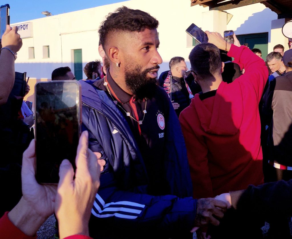 Η αποστολή των «ερυθρόλευκων» προσγειώθηκε στην Σύρο και δεκάδες οπαδοί των Πειραιωτών βρέθηκαν στο αεροδρόμιο, προκειμένου να υποδεχθούν και να αποθεώσουν τον Χοσέ Λουίς Μεντιλίμπαρ και τους ποδοσφαιριστές του.