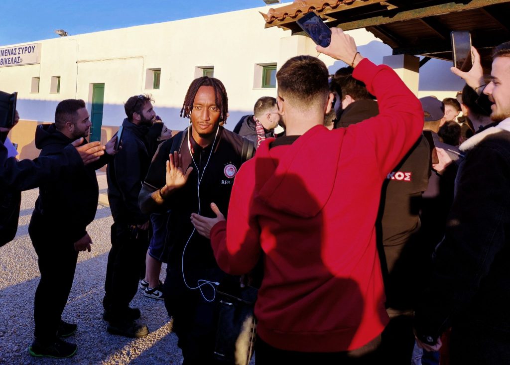 Ο κόσμος της Σύρου υποδέχθηκε με θέρμη την αποστολή του Ολυμπιακού που έφτασε στο νησί ενόψει του παιχνιδιού του Κυπέλλου Ελλάδος Betsson.